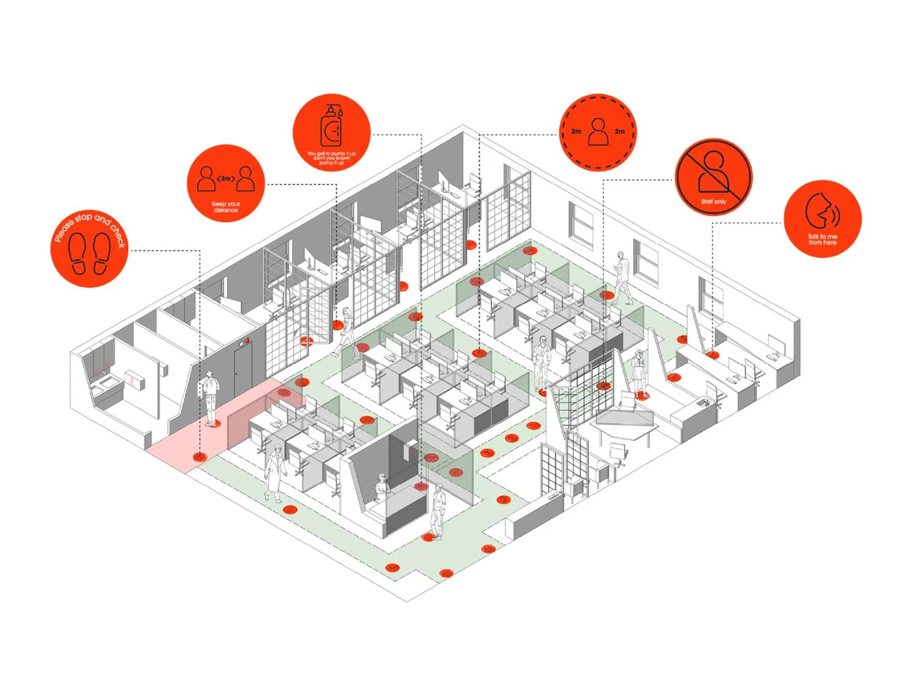Our integrated expertise in design and space planning covers all the bases to help you re-open your workspace safely. With a fully customisable range of way-finding and safety signage and equipment we can offer the complete bespoke service to help you re-organise and still look good.