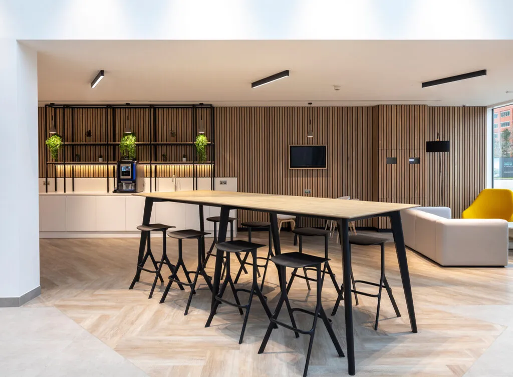 Our comprehensive refurbishment includes the creation of a range of new collaborative workspaces, breakout meeting and touch-down spaces, supported with a fabulous open-plan refreshment zone, accessible for free to all of the tenants.