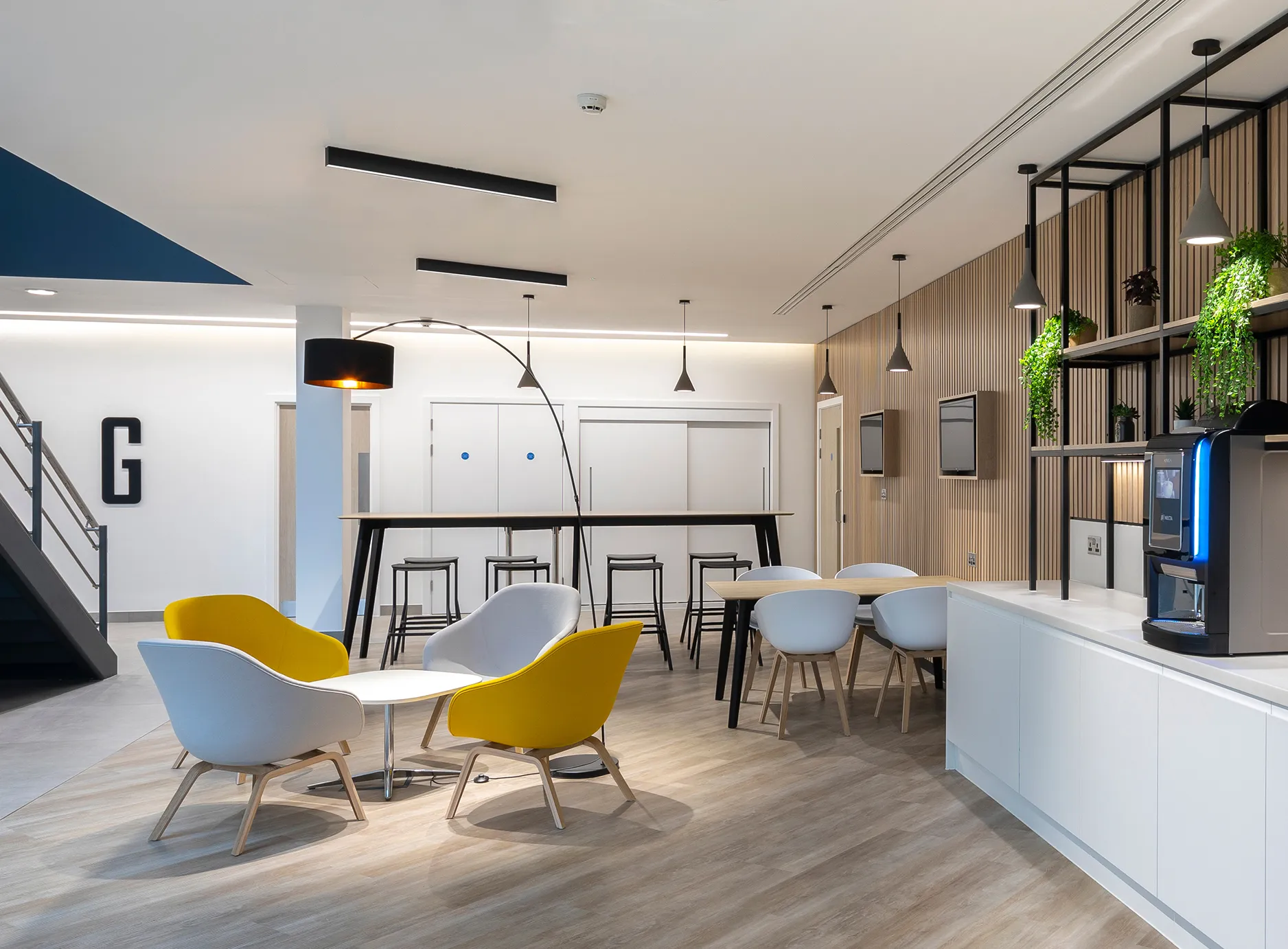 Our comprehensive refurbishment includes the creation of a range of new collaborative workspaces, breakout meeting and touch-down spaces, supported with a fabulous open-plan refreshment zone, accessible for free to all of the tenants.